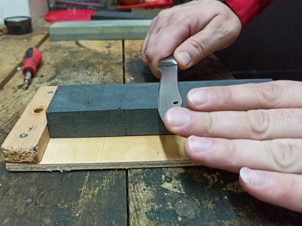 Als metallurgische Basis bevorzugen wir für Küchenwerkzeuge häufig den schwedischen Hochleistungsstahl SANDVIK 14C28N. Bei einer exakten, kryogenen Wärmebehandlung auf 60 HRC kombiniert diese Legierung eine herausragende Beständigkeit gegen aggressive Fruchtsäuren mit der Fähigkeit, eine mikroskopisch feine Schneide aufzubauen. Unsere Klingen weisen ein kontinuierliches Distal Tapering auf – sie verjüngen sich präzise vom massiven Erl bis zur hauchdünnen Spitze. Dies minimiert den Keil-Effekt und den Schnittwiderstand bei festem Gemüse drastisch. Den Kropfbereich runden wir in Handarbeit vollständig ab, sodass der professionelle Übergreif-Griff (Pinch-Grip) auf den Klingenrücken auch unter hohem Druck keine schmerzhaften Kanten in der Hand hinterlässt.